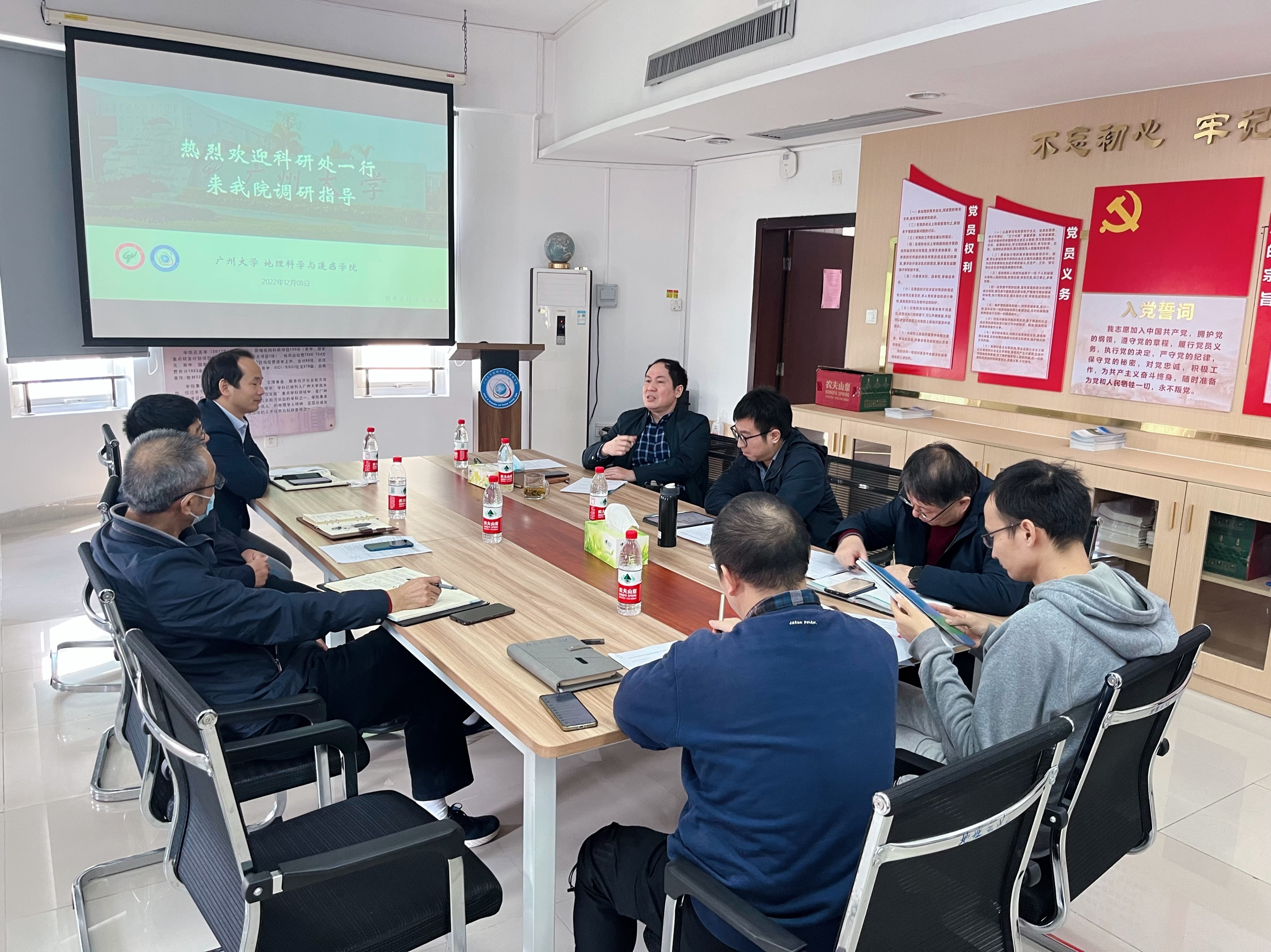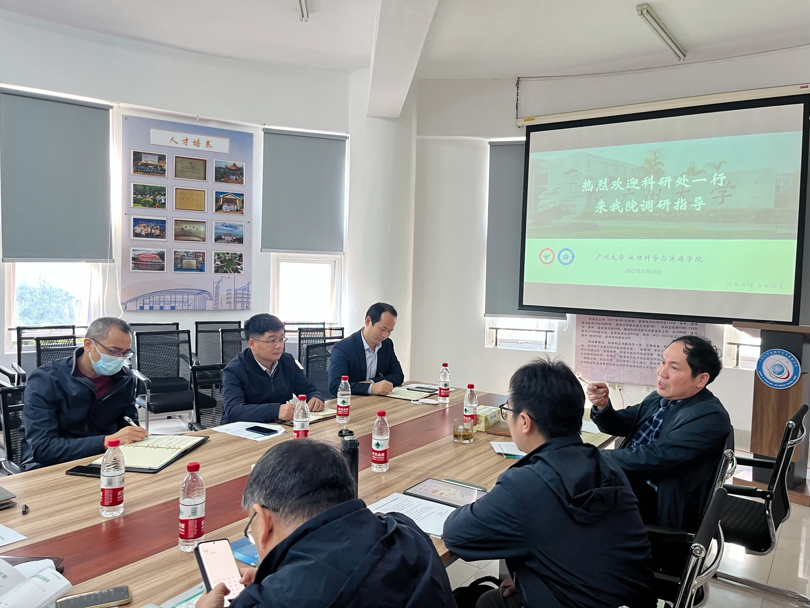 2022年12月8日下午,学校科学研究院吴会军副院长(科技成果转化中心主任)、科技成果转化中心李小华副主任、科技处杨玉宝副处长、科技成果转化中心顾书老师,黄莹老师对永利官网的科研和科技成果转化工作进行调研和交流。吴志峰院长、袁振杰副院长、陈颖彪教授、徐国良教授、郭冠华副教授参加了本次会议。