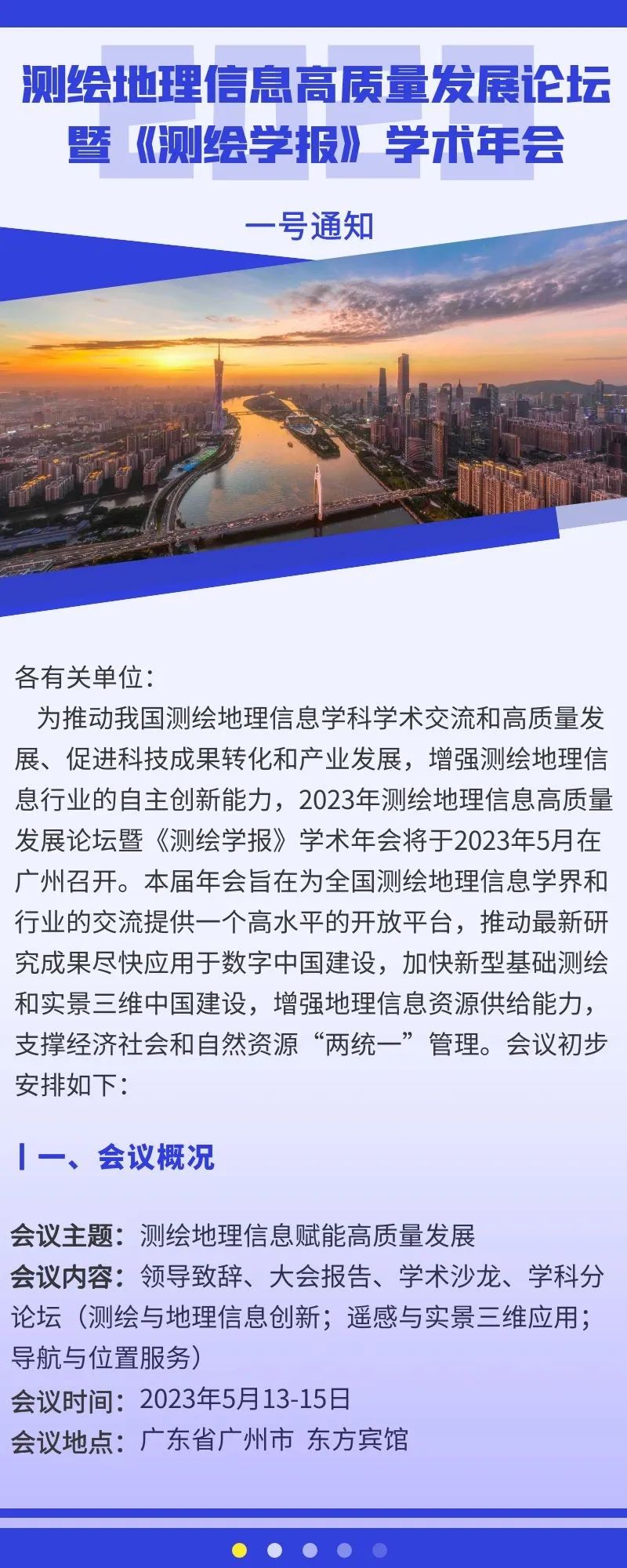 关于举办2023年测绘地理信息高质量发展论坛暨《测绘学报》学术年会的通知(一号)
